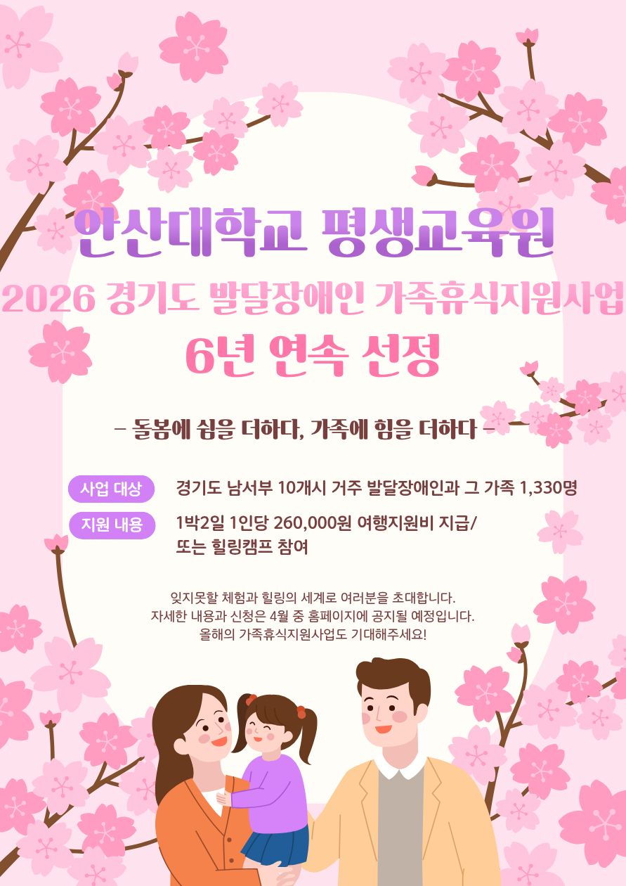 안산대학교 평생교육원이 2026 경기도 발달장애인 가족휴식지원사업에